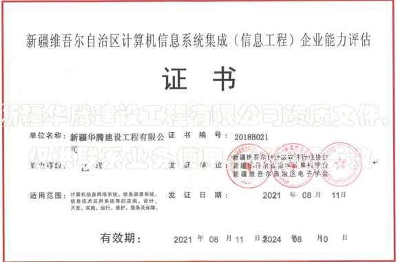 新疆維吾爾自治區(qū)計(jì)算機(jī)信息系統(tǒng)集成企業(yè)證書(shū)